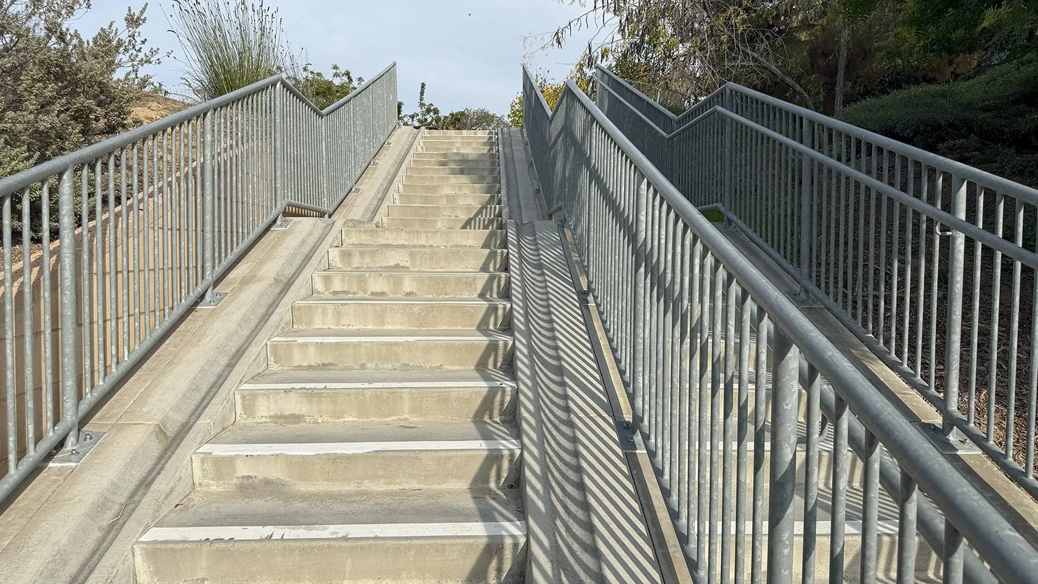 There’s a small parking area on Brea Blvd., along with a public restroom, shaded tables and benches, and some exercise apparatus.
